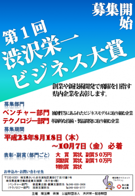 埼玉県、「第1回渋沢栄一ビジネス大賞」(副賞50万円等)の募集を開始