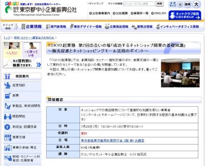 TOKYO起業塾「成功するネットショップ開業の基礎知識」セミナーが7/26に開催